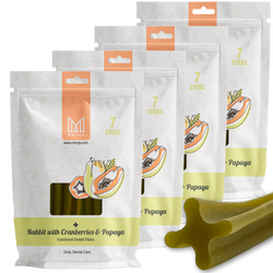 Przekąska stomatologiczna dla psów Mersjo Dental Sticks - królik z papają i żurawiną (28 sticków)