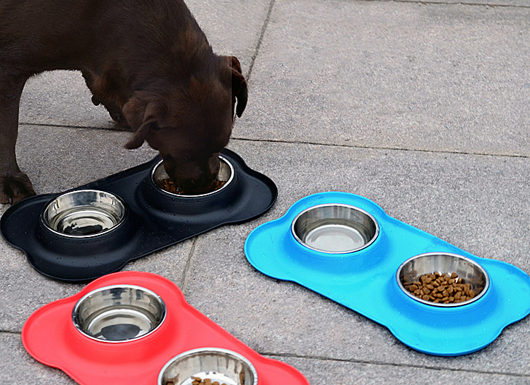 - 2 metalowe miski umiejscowione w silikonowej podstawce