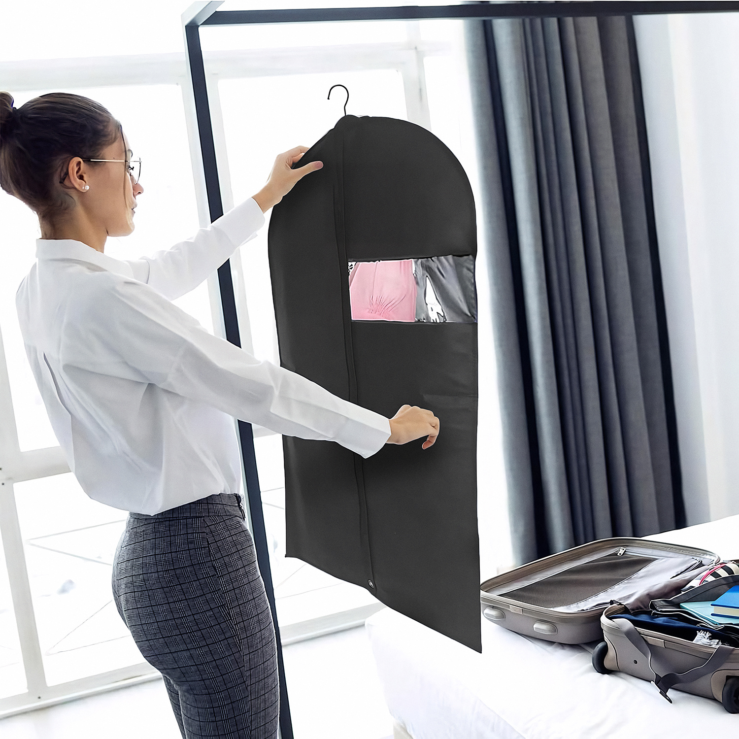 - PRAKTYCZNE ZAMKNIĘCIE: każdy pokrowiec wyposażony jest w solidny zamek błyskawiczny, otwór na wieszak oraz okienko umożliwiające szybki podgląd zawartości.