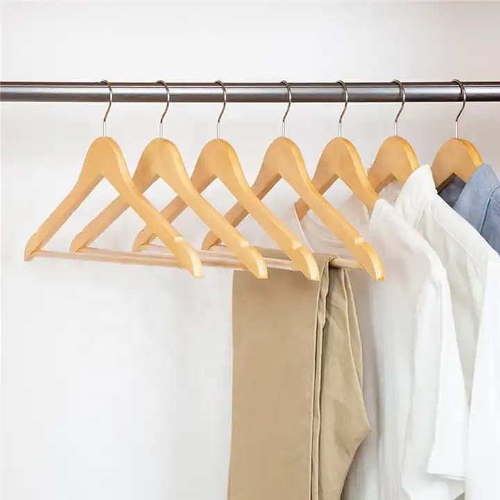 Wieszaki z litego drewna z chromowanymi haczykami - Idealne rozwiązanie dla Twojej szafy!